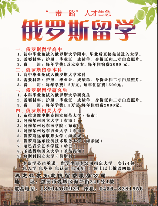 2018年赴俄罗斯、白俄罗斯留学暑期语言